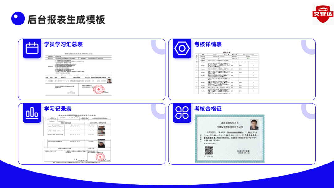 全面对标交通部最新监管要求设计功能。所有操作与学习过程全程留痕,生成不可篡改的电子档案,为应对审计与检查提供坚实凭据,保障企业安全。