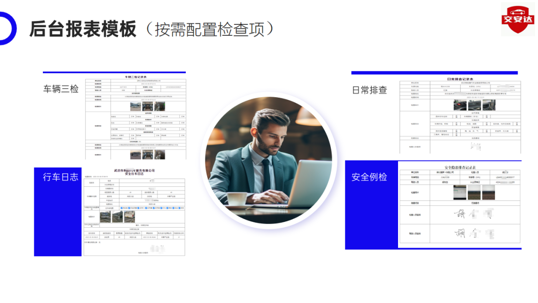 隐患实时预警:司机通过手机按规完成检查项勾选、拍照上传,数据实时同步,自动生成多维风险分析报表。