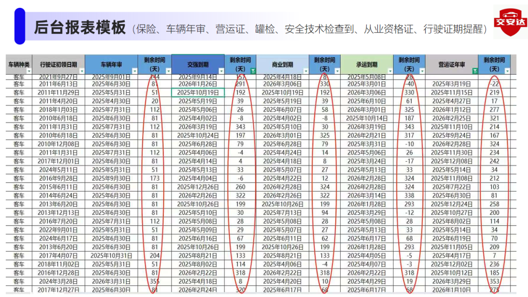 到期智能提醒:自动计算证件年审、换证时间,提前通过短信推送提醒至相关责任人,杜绝证件过期运营风险。